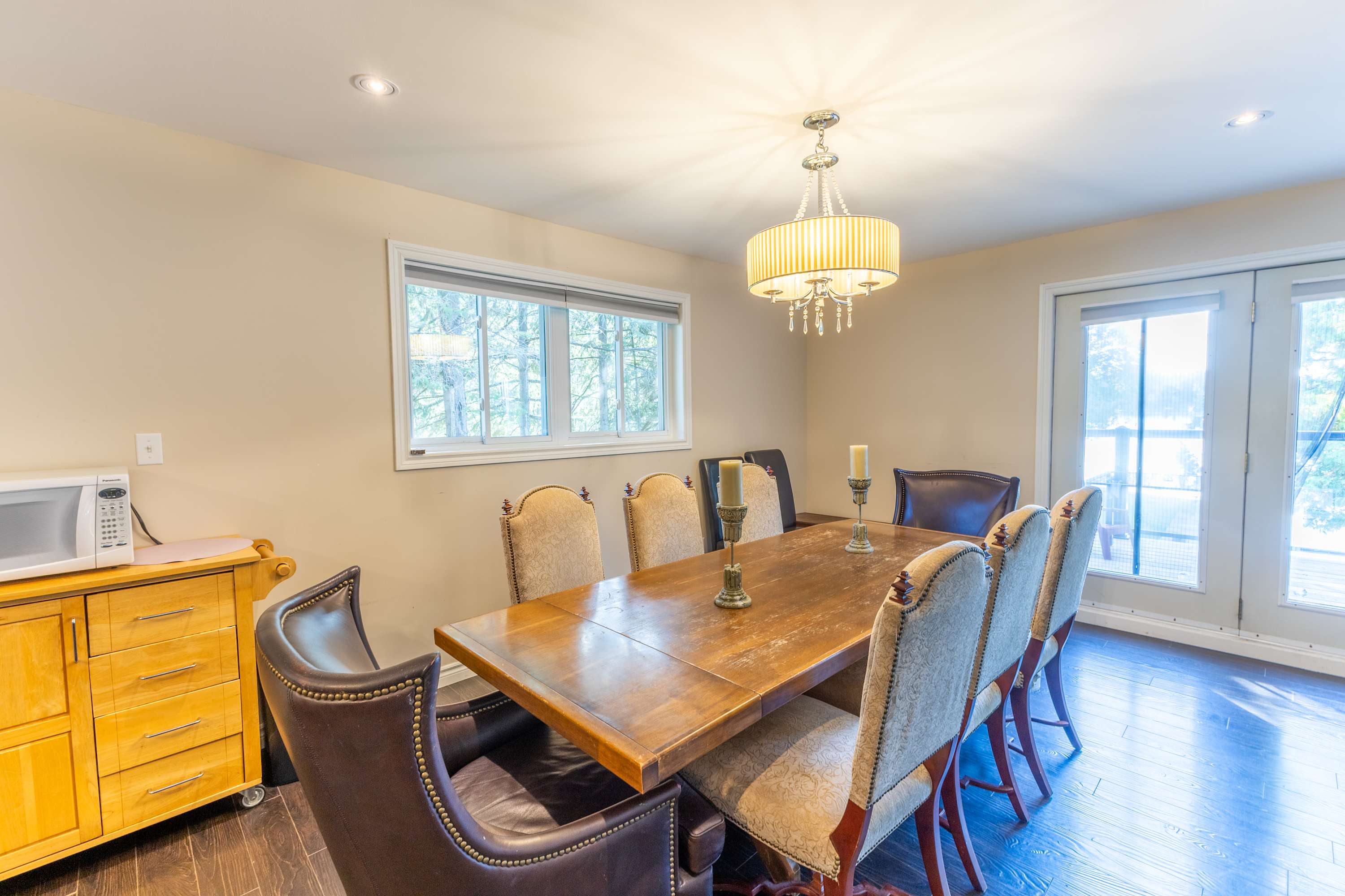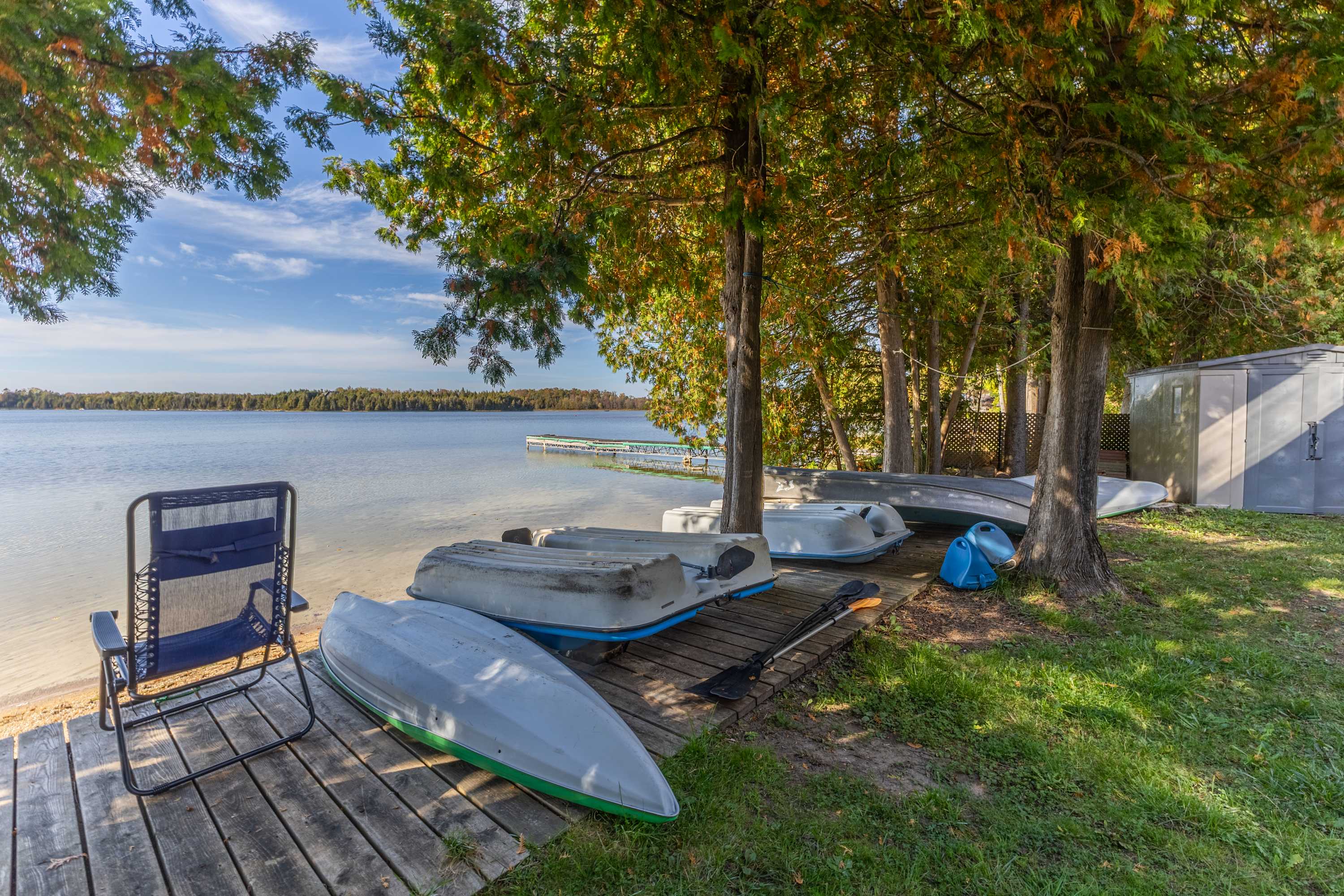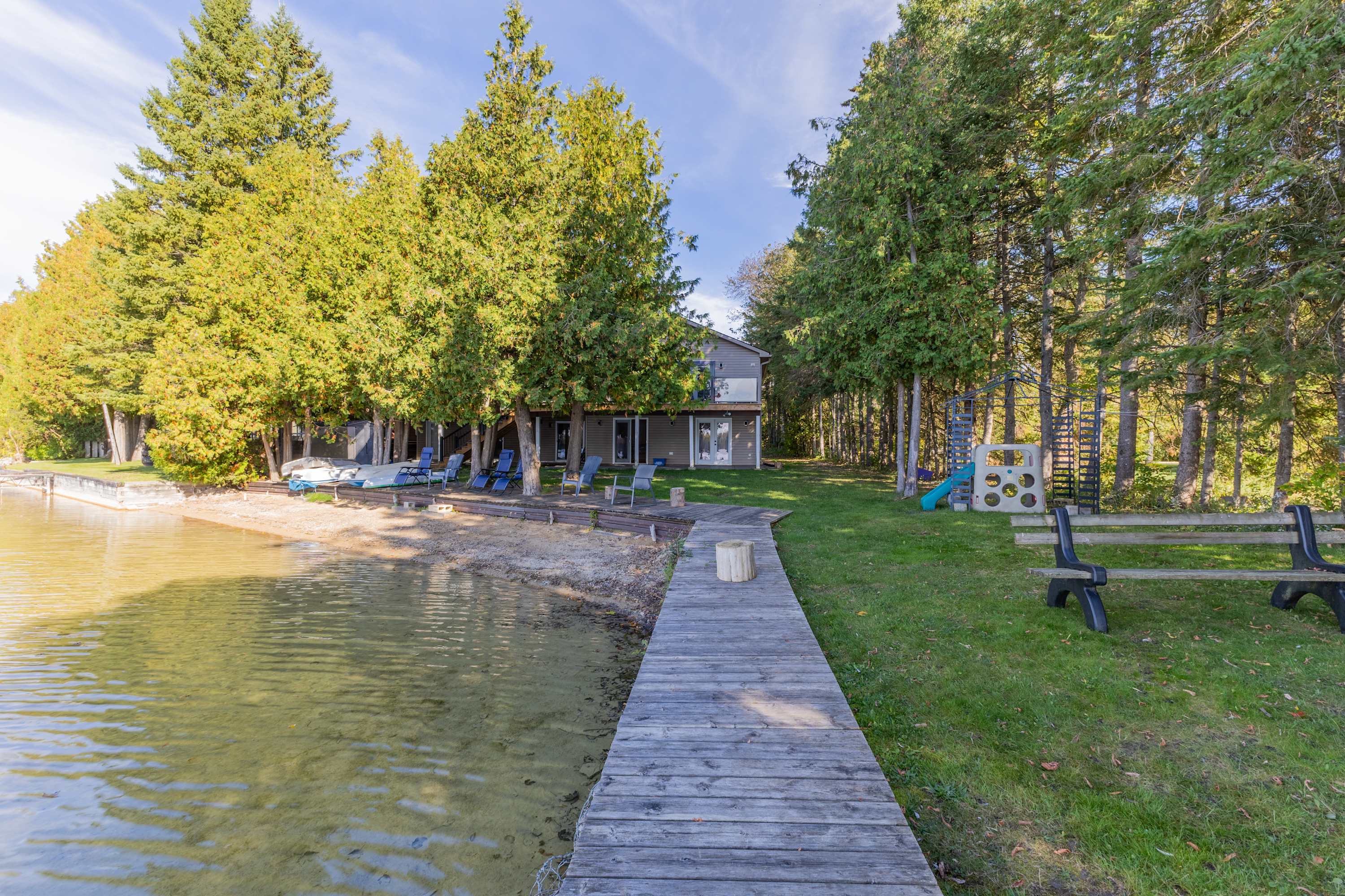 Welcome to the picturesque shores of McCullough Lake. This expansive 3100 square foot executive cottage, boasts 6 bedrooms and 4 bathrooms and is a mere 30 km outside the city of Owen Sound. With three bedrooms on the main level and three on the lower level, this cottage includes 1 king, 3 queen, 2 singles, and 1 set of single bunk beds. Step outside to relish the deck overlooking the lake, where a patio table and barbecue set the stage for delightful outdoor meals and a front-row view of breathtaking sunsets.