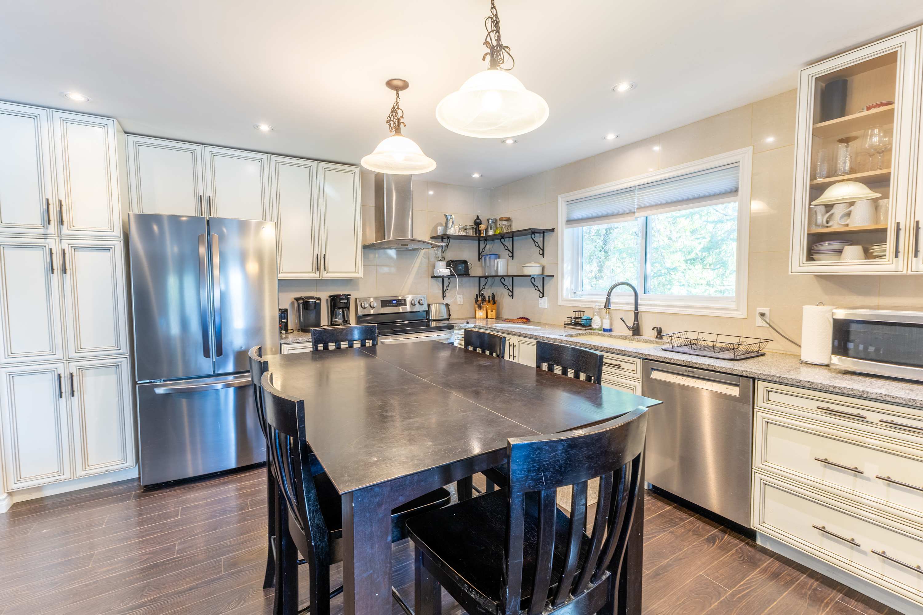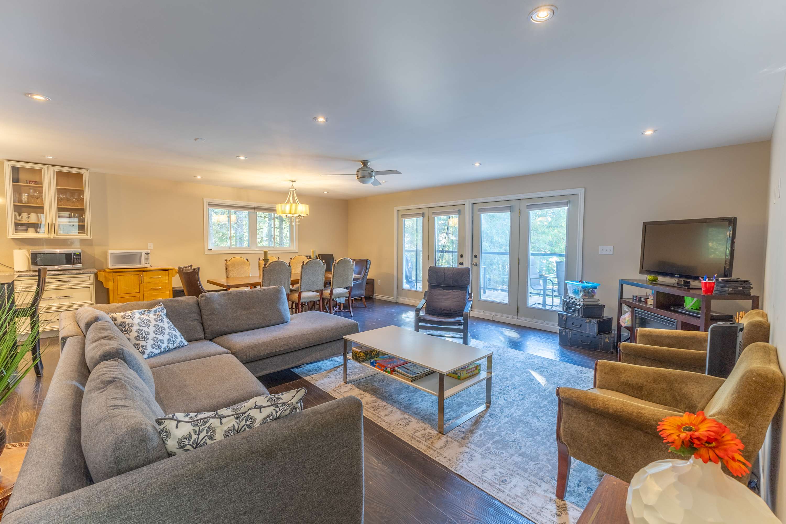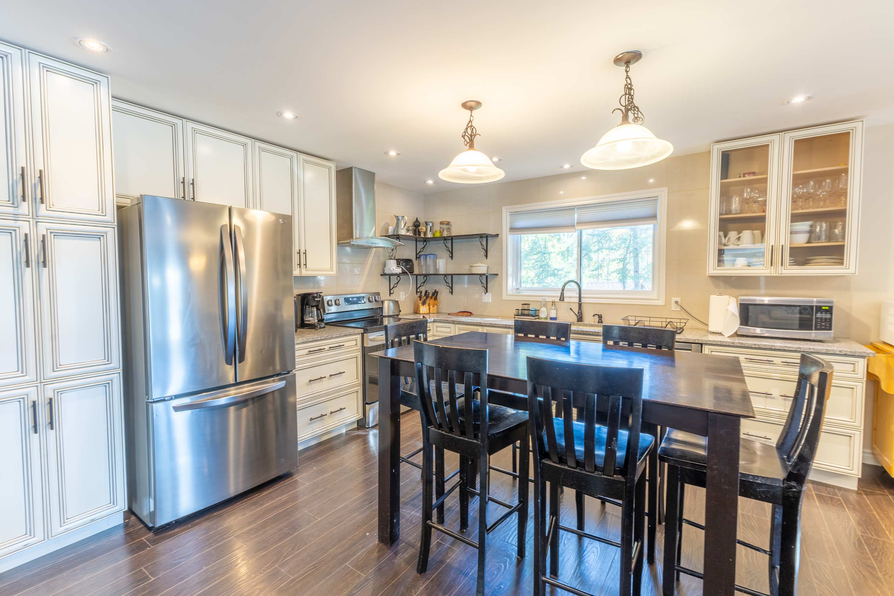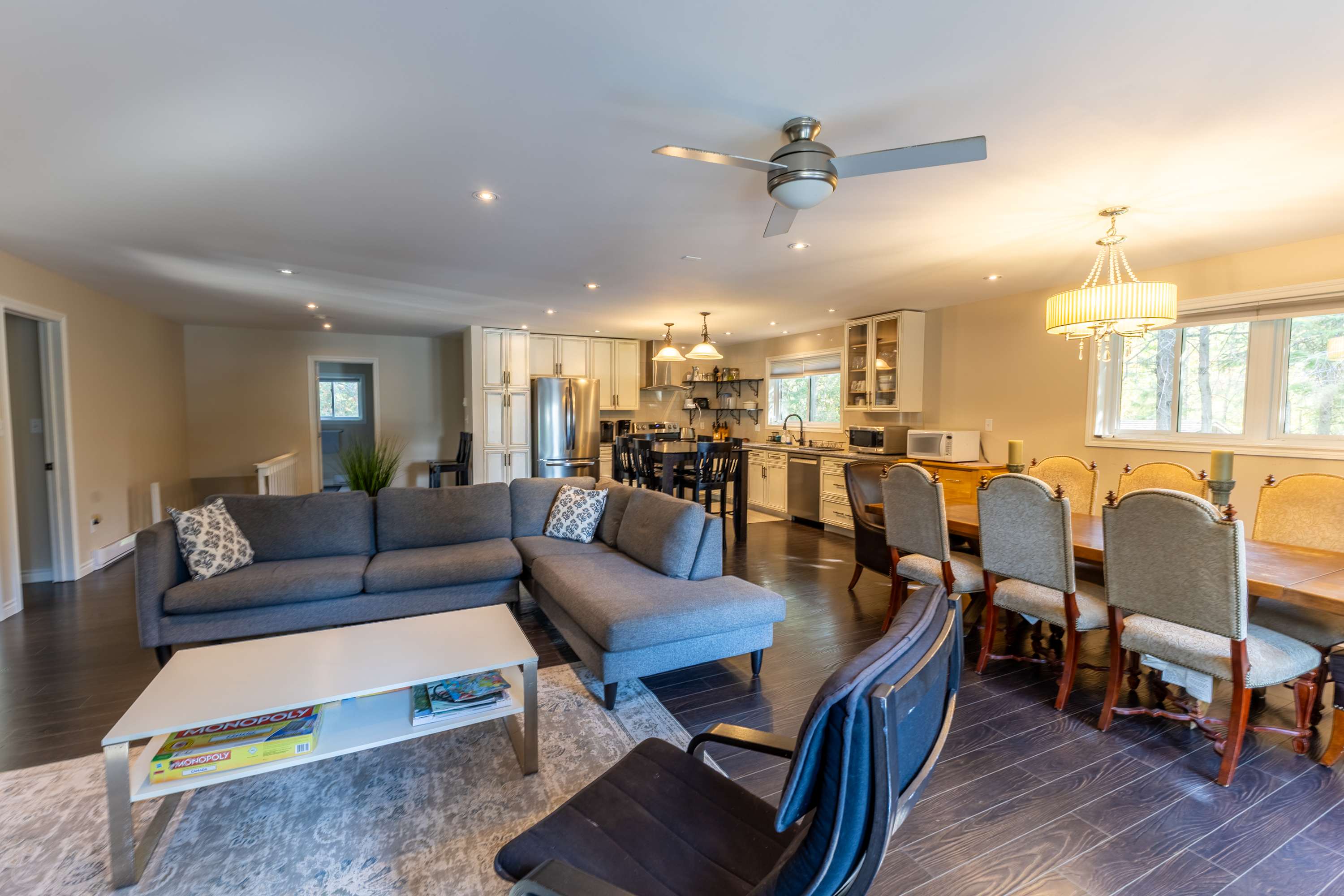 Welcome to the picturesque shores of McCullough Lake. This expansive 3100 square foot executive cottage, boasts 6 bedrooms and 4 bathrooms and is a mere 30 km outside the city of Owen Sound. With three bedrooms on the main level and three on the lower level, this cottage includes 1 king, 3 queen, 2 singles, and 1 set of single bunk beds. Step outside to relish the deck overlooking the lake, where a patio table and barbecue set the stage for delightful outdoor meals and a front-row view of breathtaking sunsets.