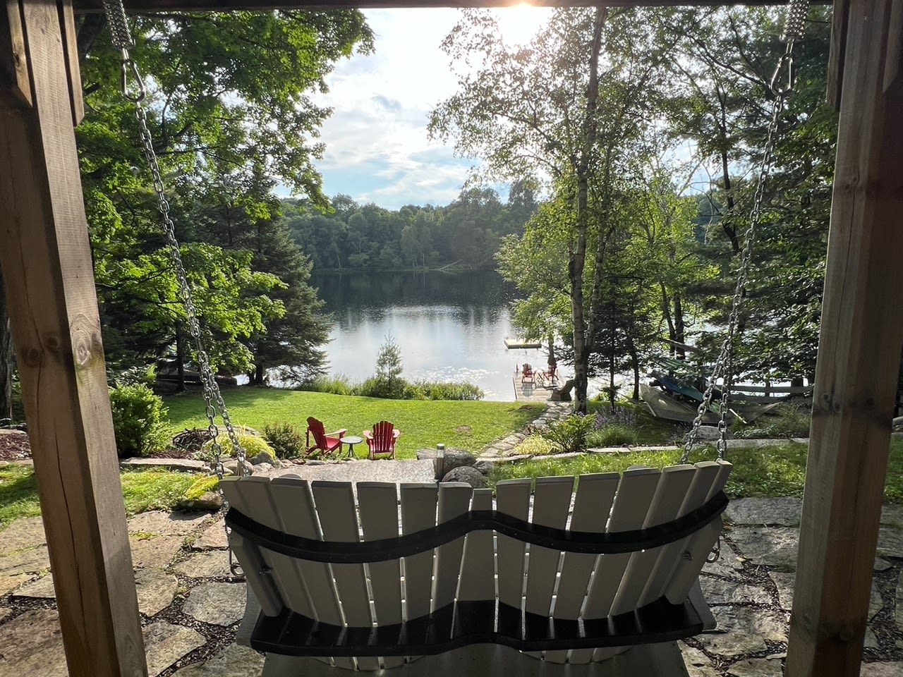 This lovely 4-season, 2,000 sq. ft., 2 level, 3 bedroom cottage is nestled on a half acre of land on the tranquil shores of Palette Lake. Palette Lake is in the shape of (you guessed it!) a paint palette and this property is ideally located at the quiet end of the lake, a place to visit for peacefulness and nature.