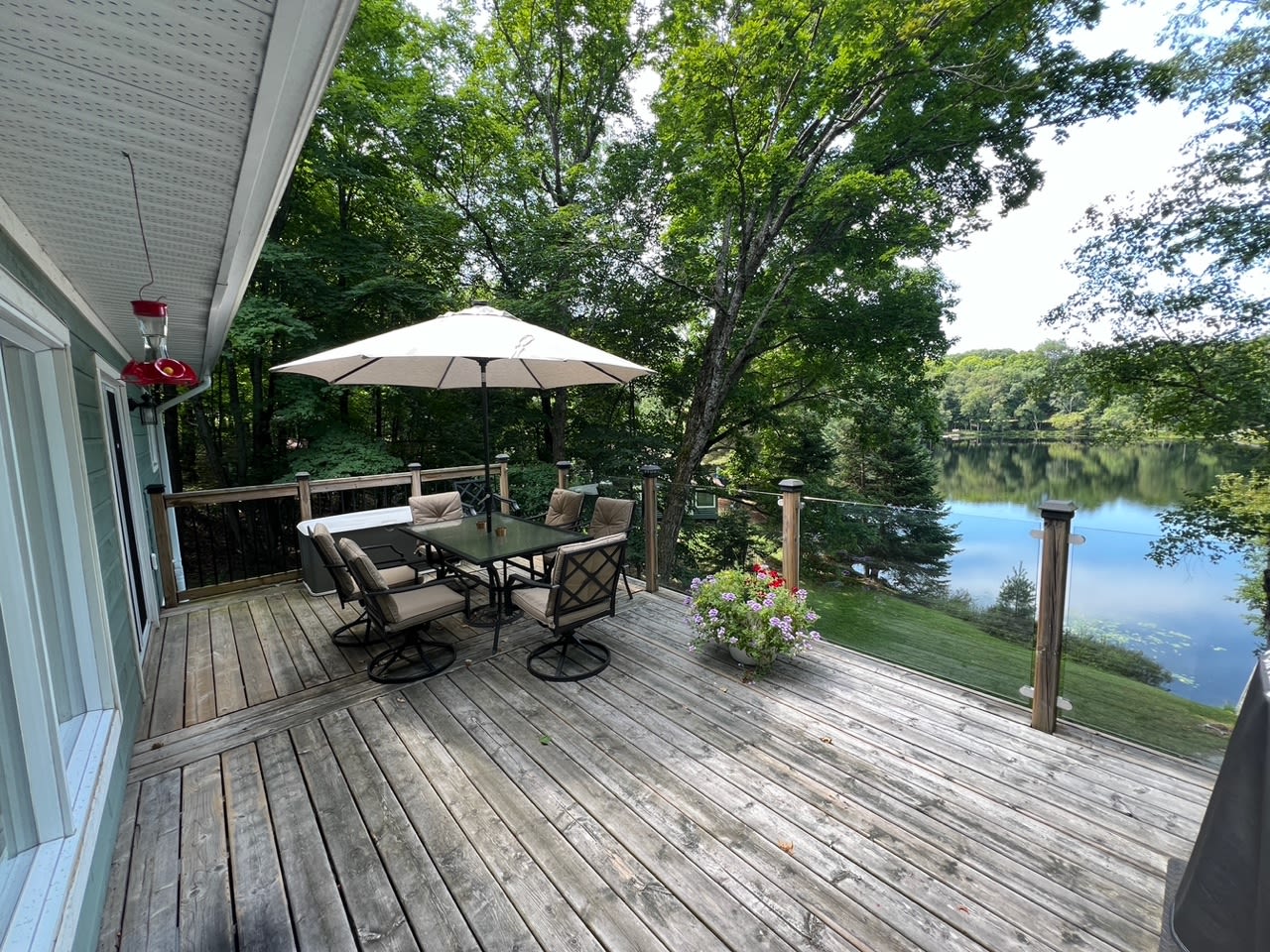 • patio dining table with 8 chairs on deck