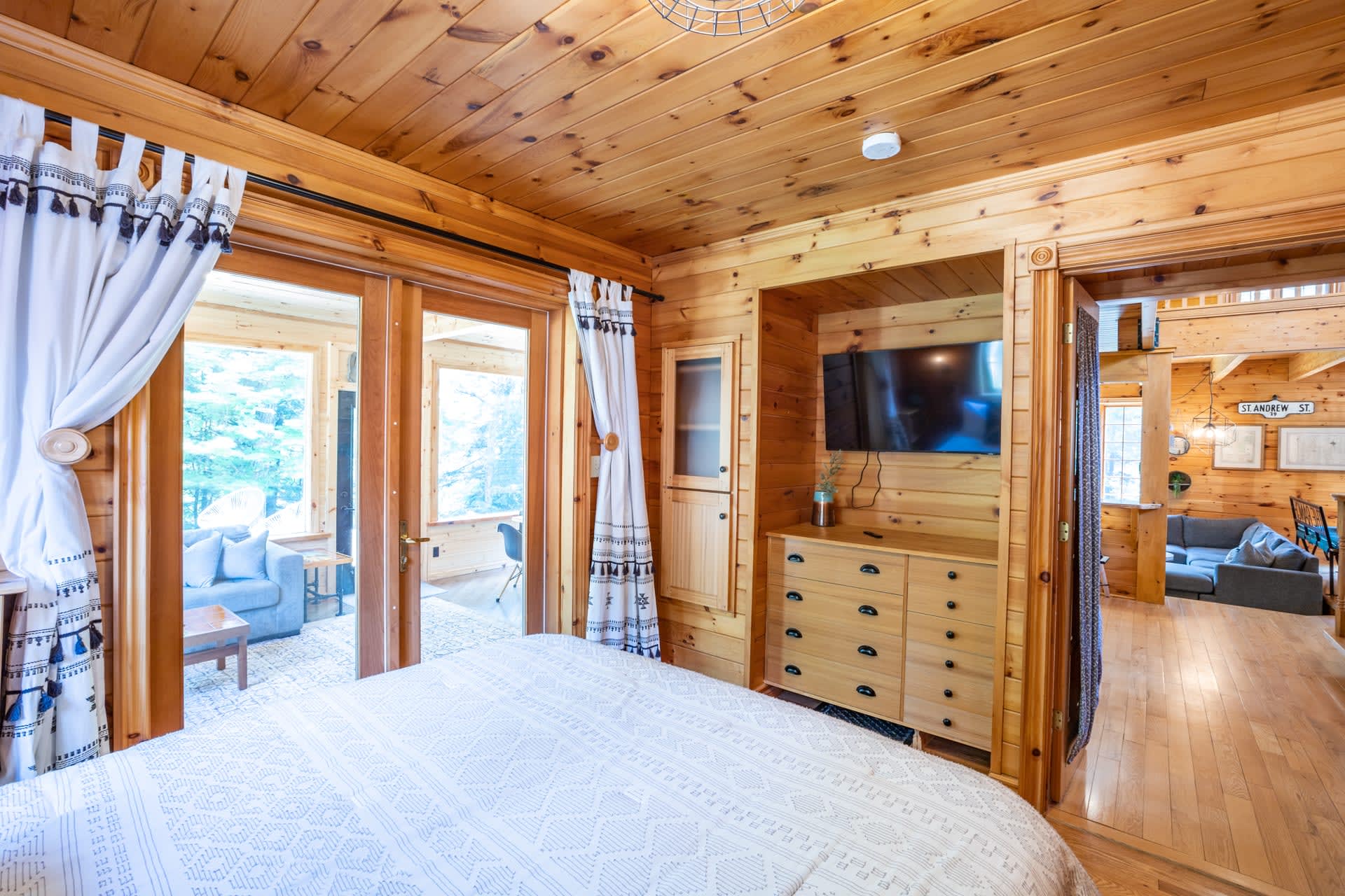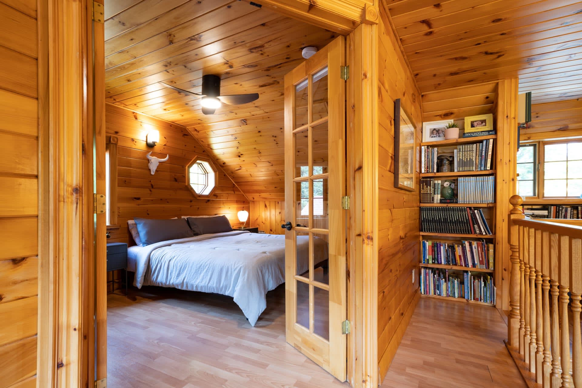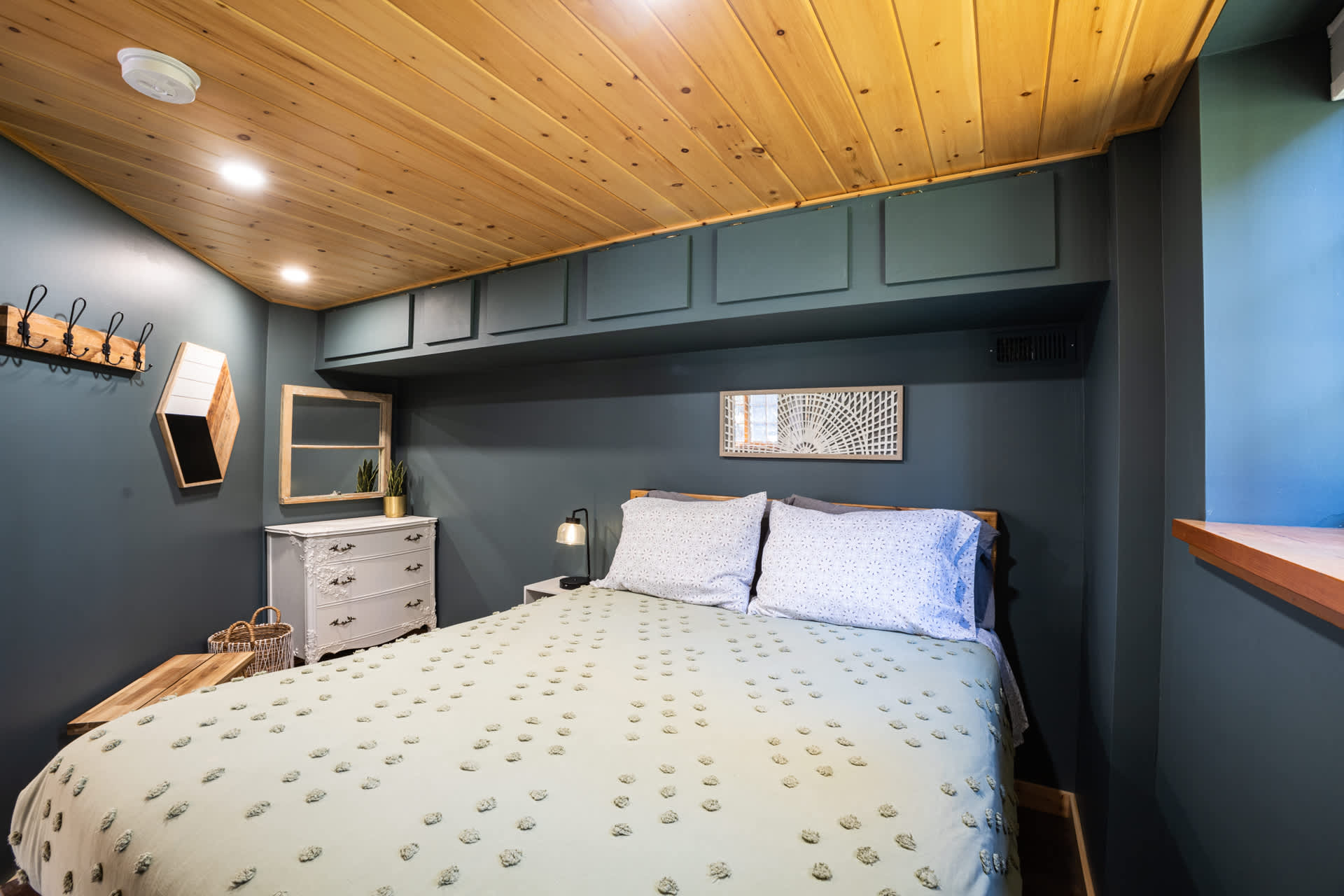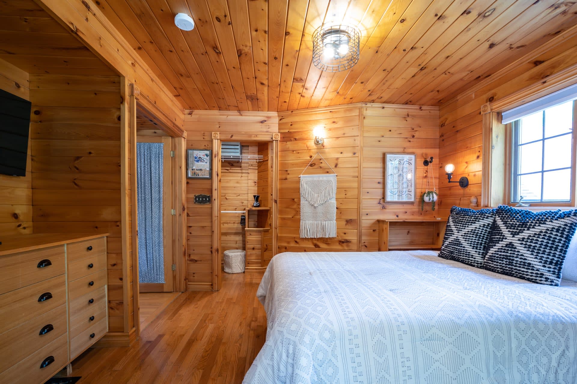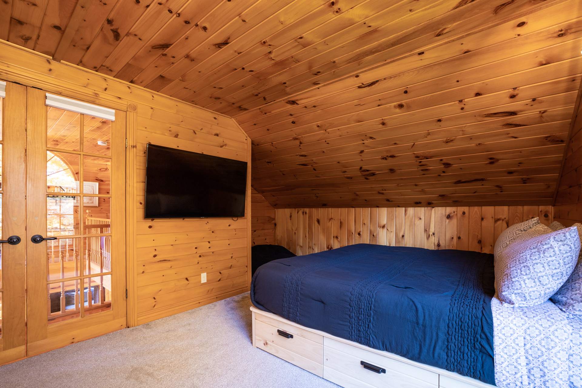 4 bedrooms (main level - queen; upper level - king; 3 built-in bunk beds, 1 King; lower level - queen