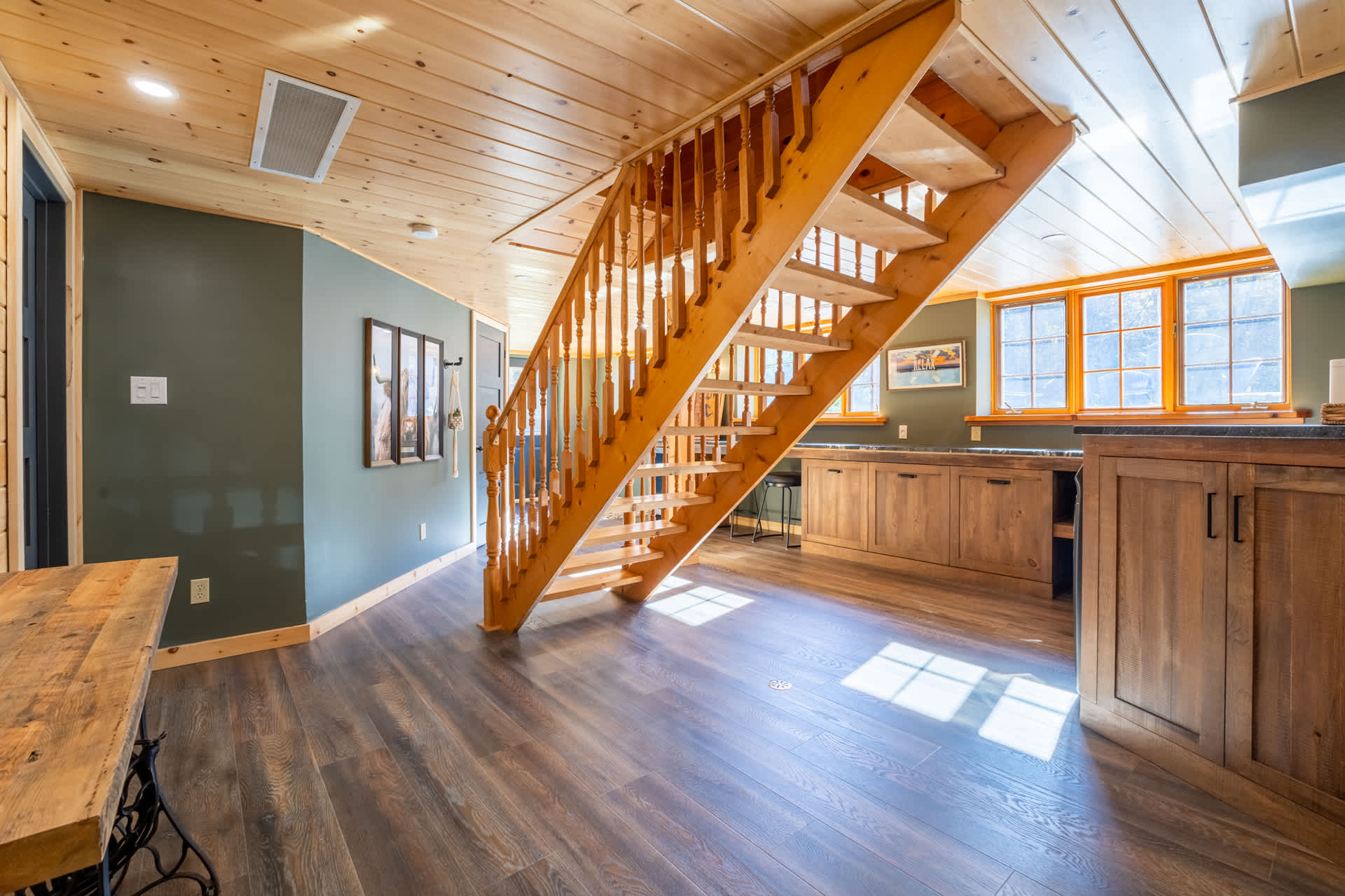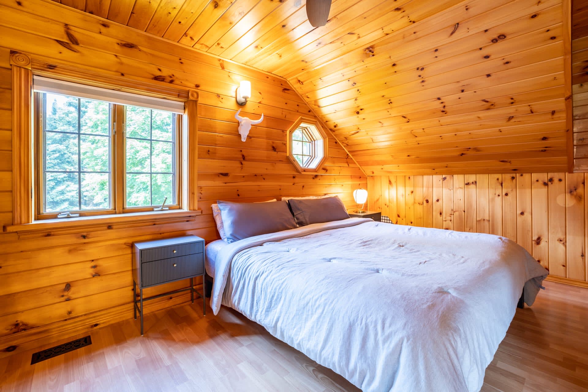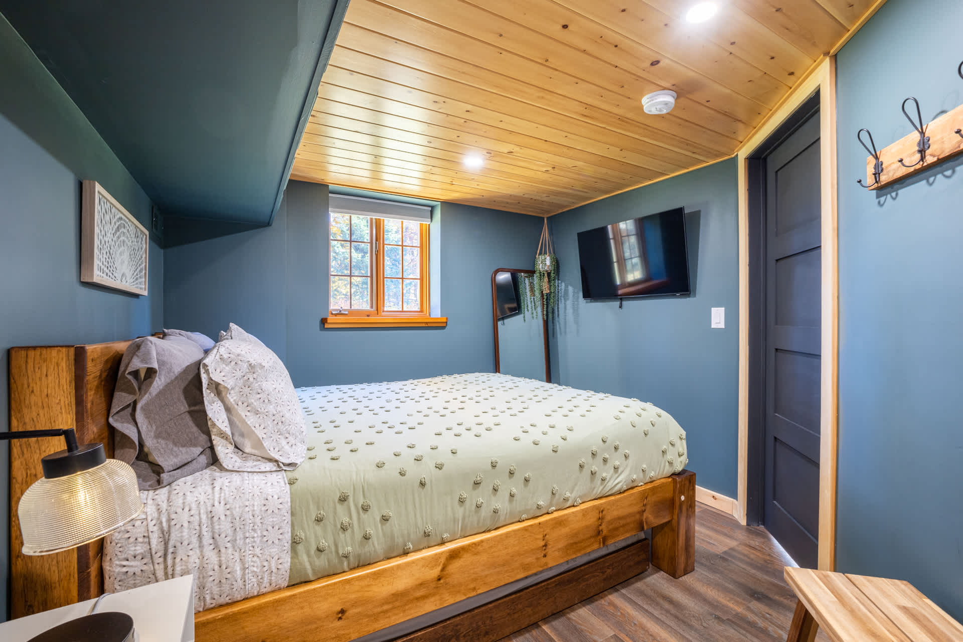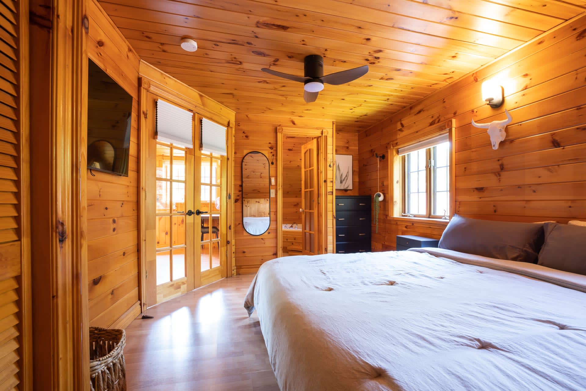 4 bedrooms (main level - queen; upper level - king; 3 built-in bunk beds, 1 King; lower level - queen