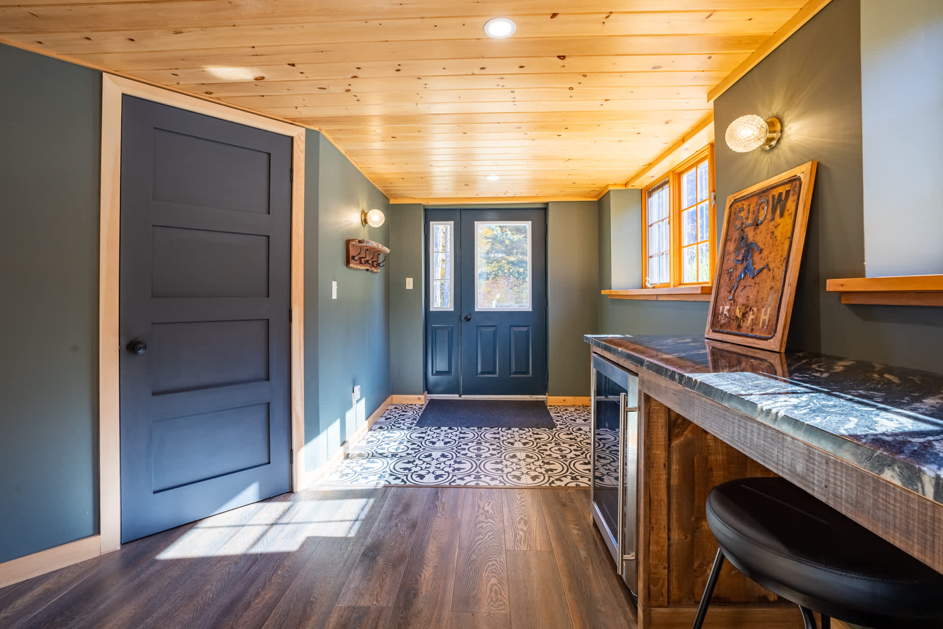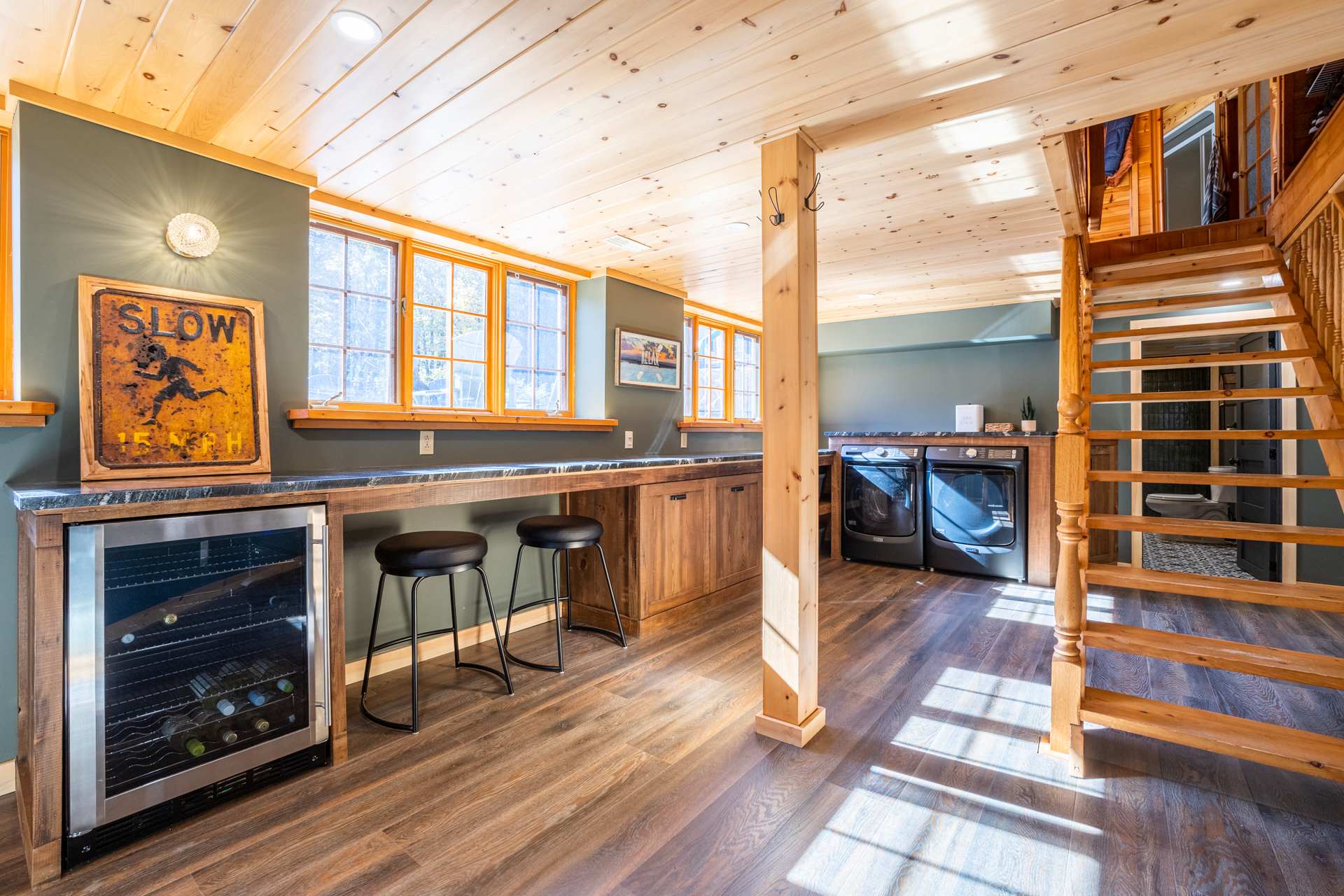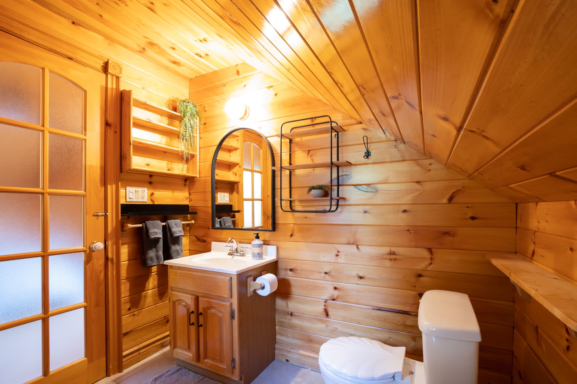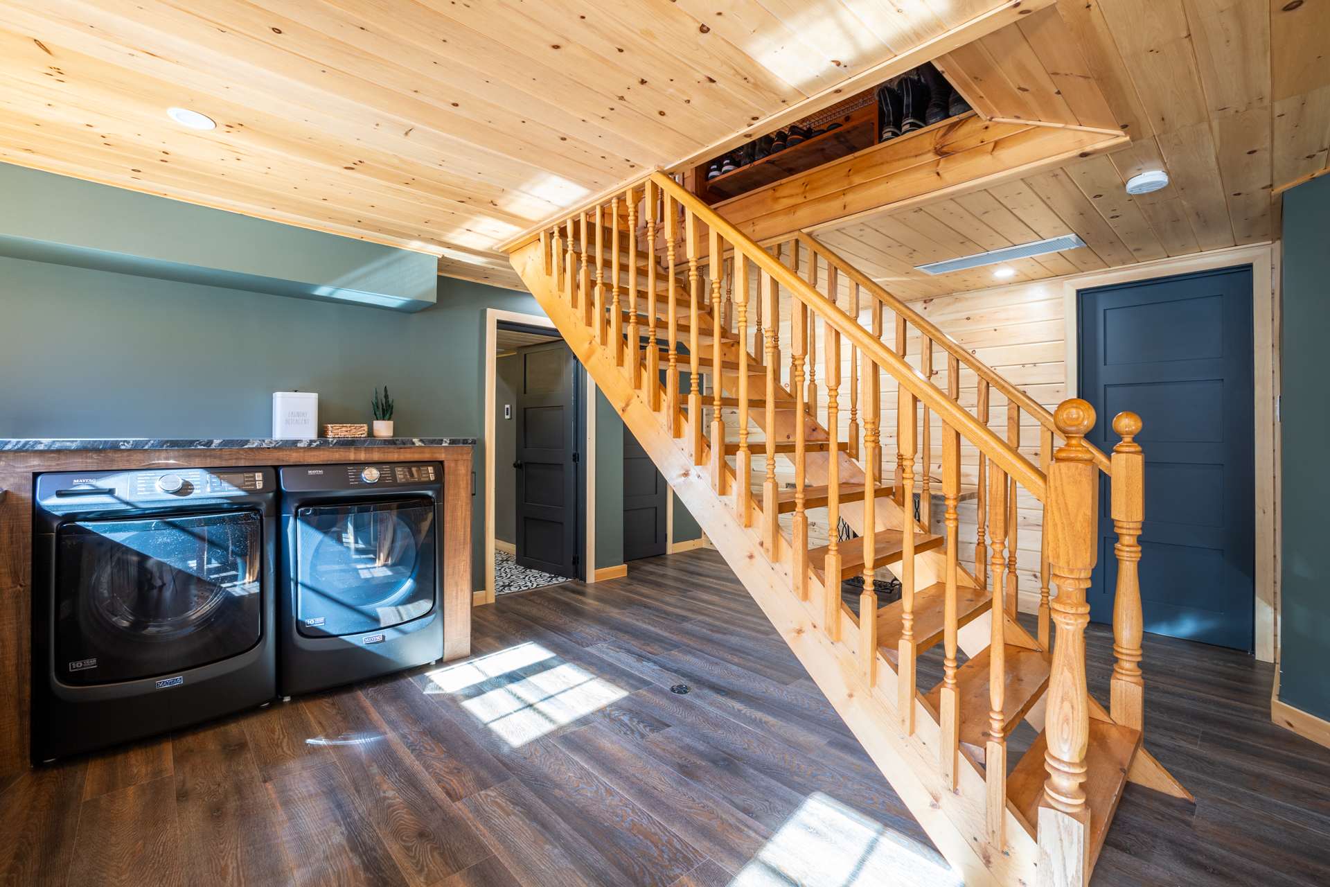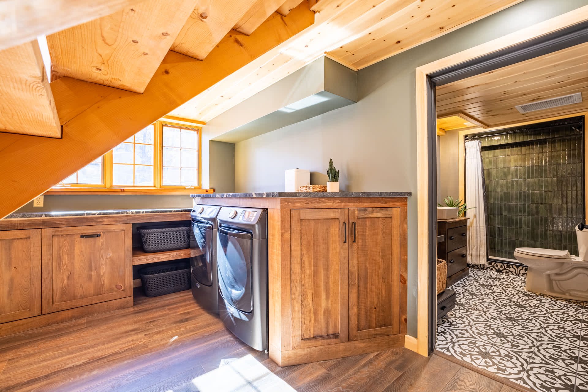 4 bedrooms (main level - queen; upper level - king; 3 built-in bunk beds, 1 King; lower level - queen
