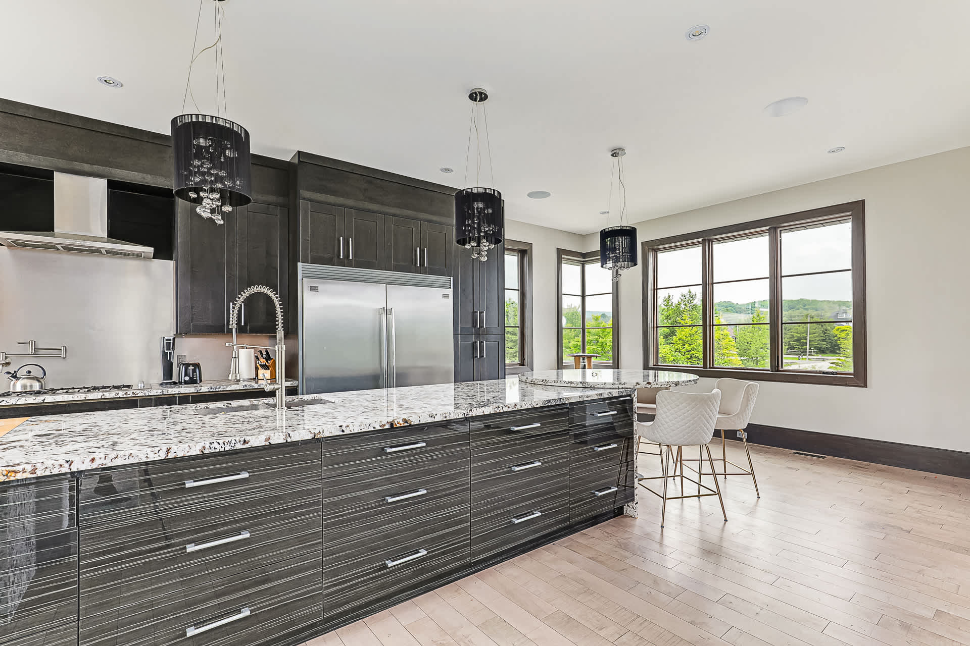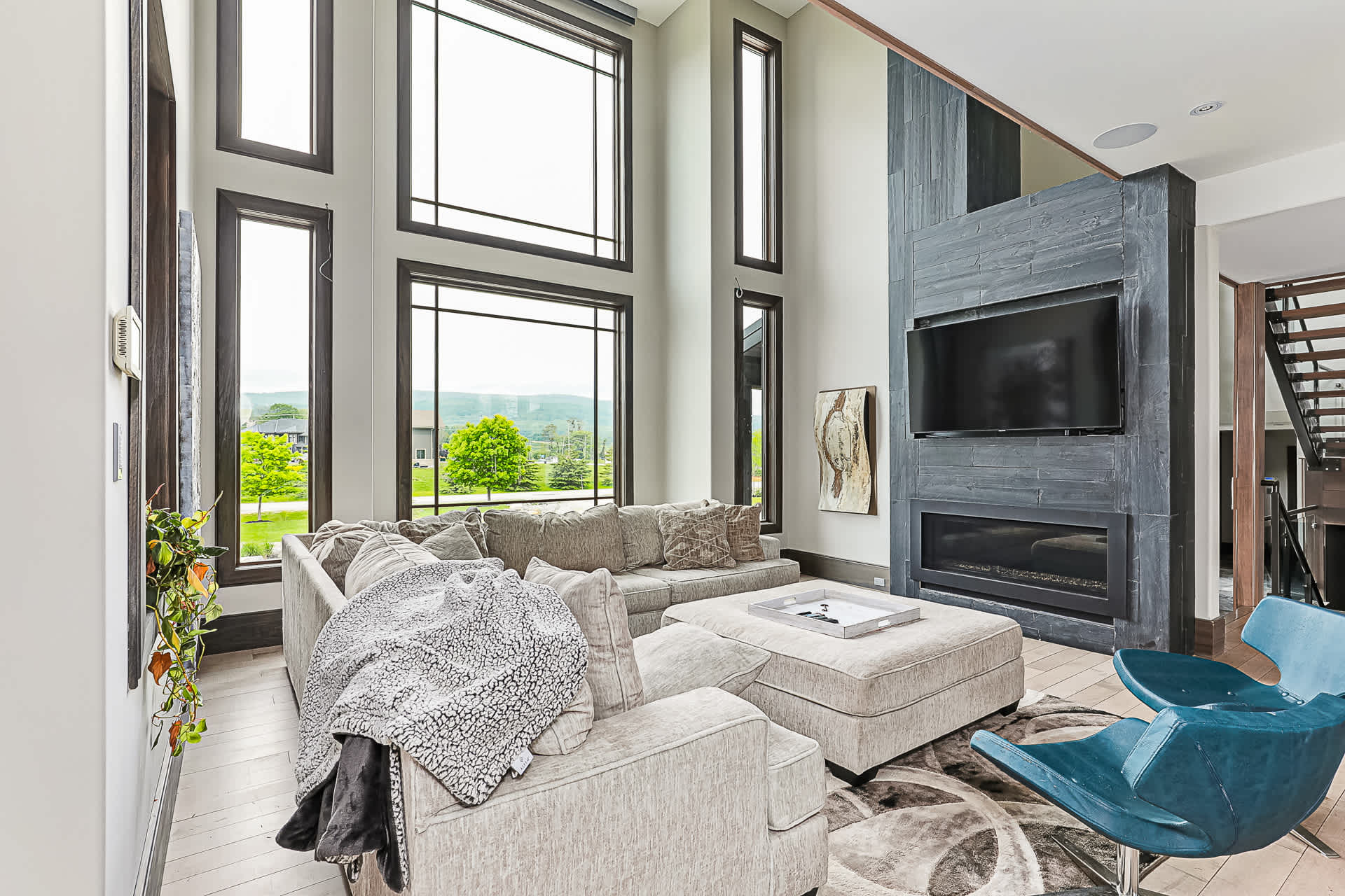 Set on over an acre with sweeping views of Osler and Blue Mountain, this impressive 7,800 sq ft residence blends striking modern design with refined comfort and thoughtful functionality for family living. Inside, soaring ceilings, rich maple flooring, and expansive floor to ceiling windows fill the home with natural light while showcasing the stunning surroundings. The great room, centred around a statement fireplace, creates a warm and inviting space for both entertaining and relaxing. A stylish piano lounge adds a...
