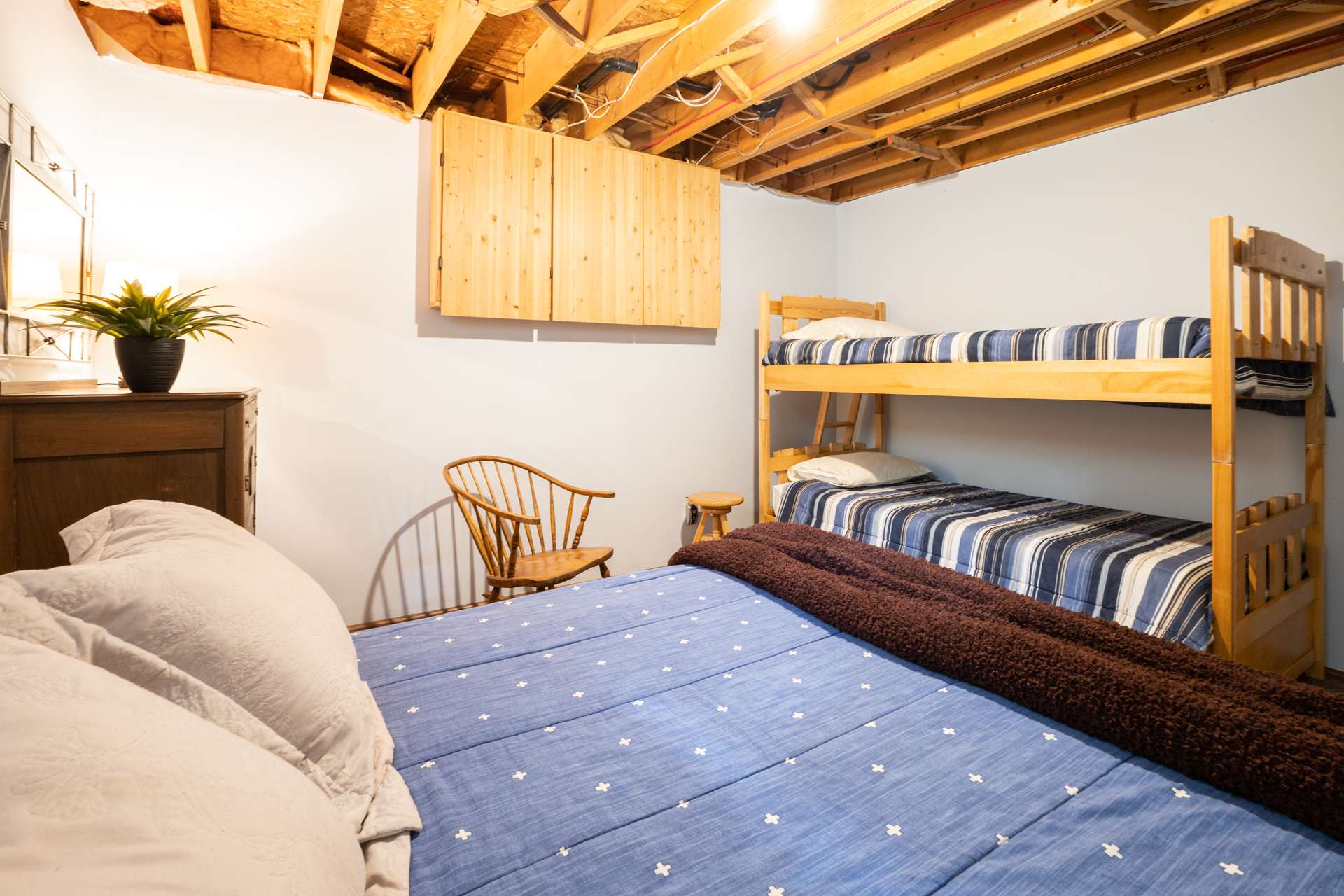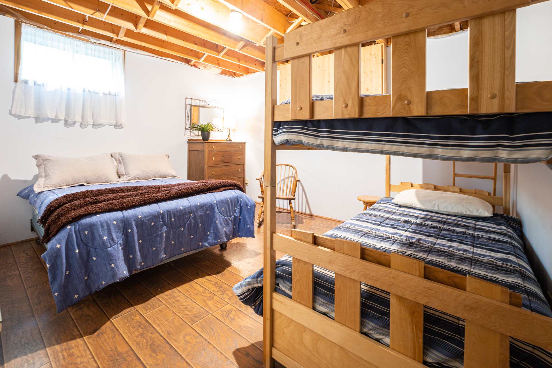 •4 Bedrooms (1 queen; 1 queen; 1 queen; 1 single/single bunkbed, 1 double)