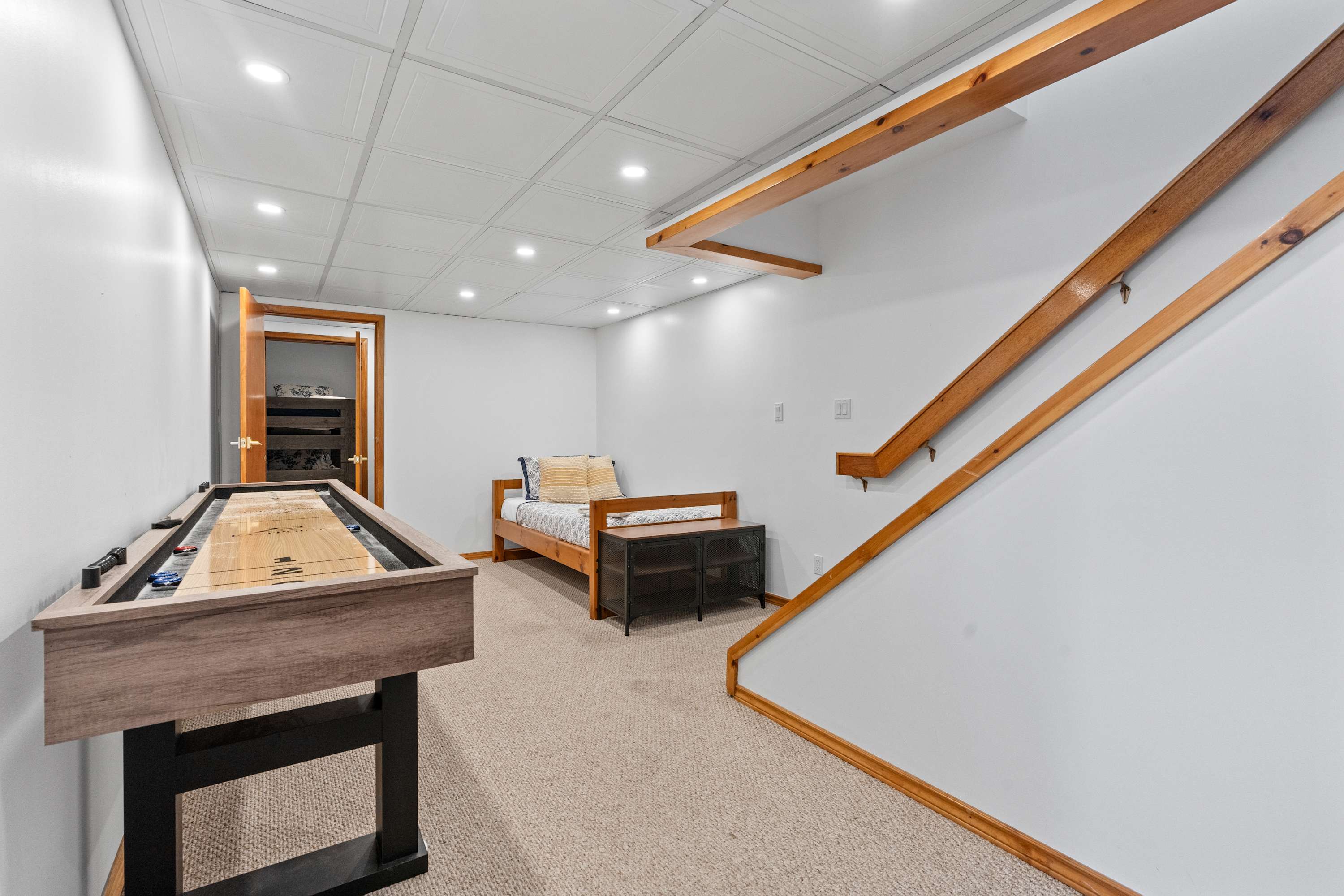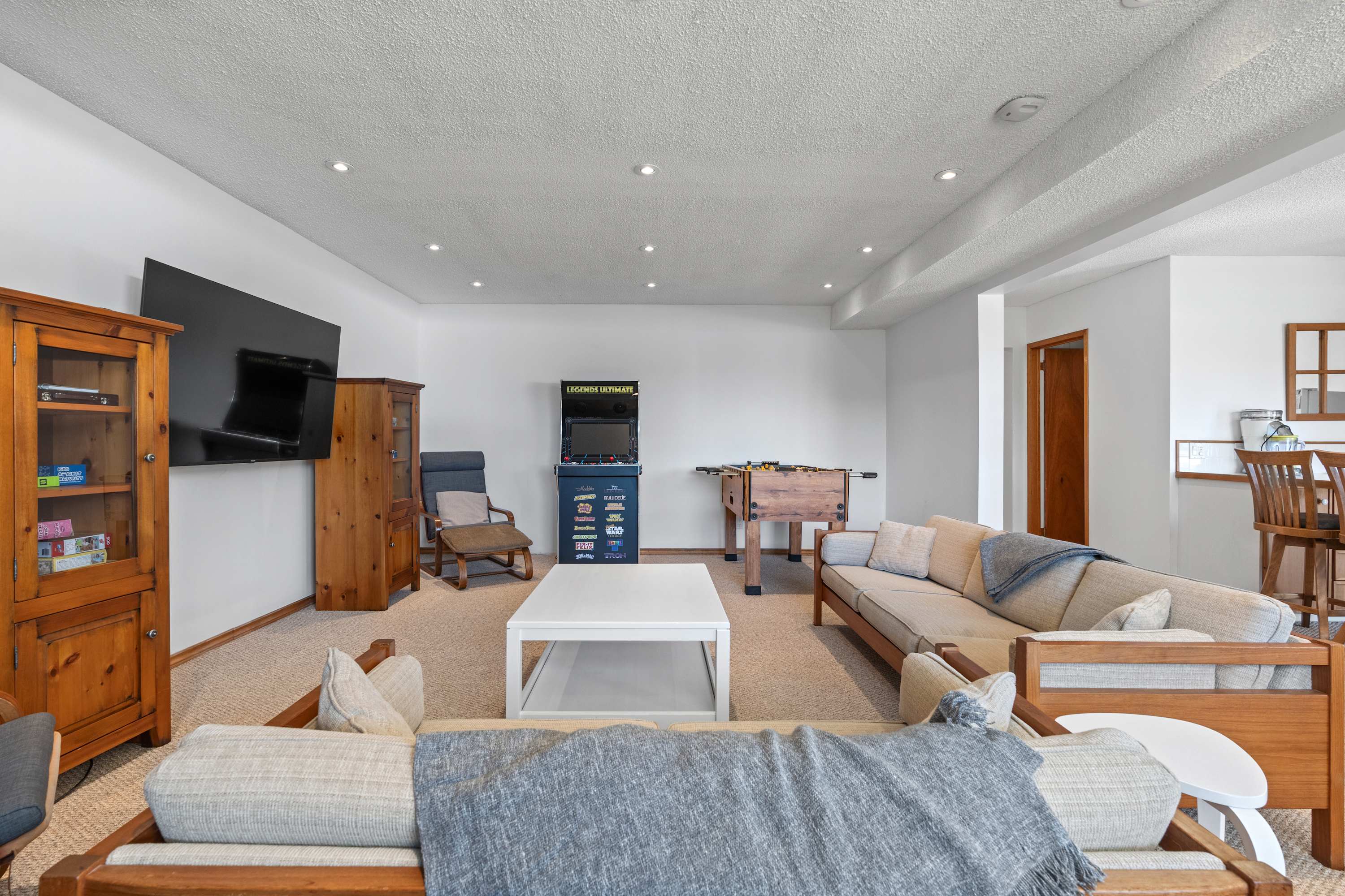 • shuffleboard, foosball table & multi-game arcade unit (lower level rec room)