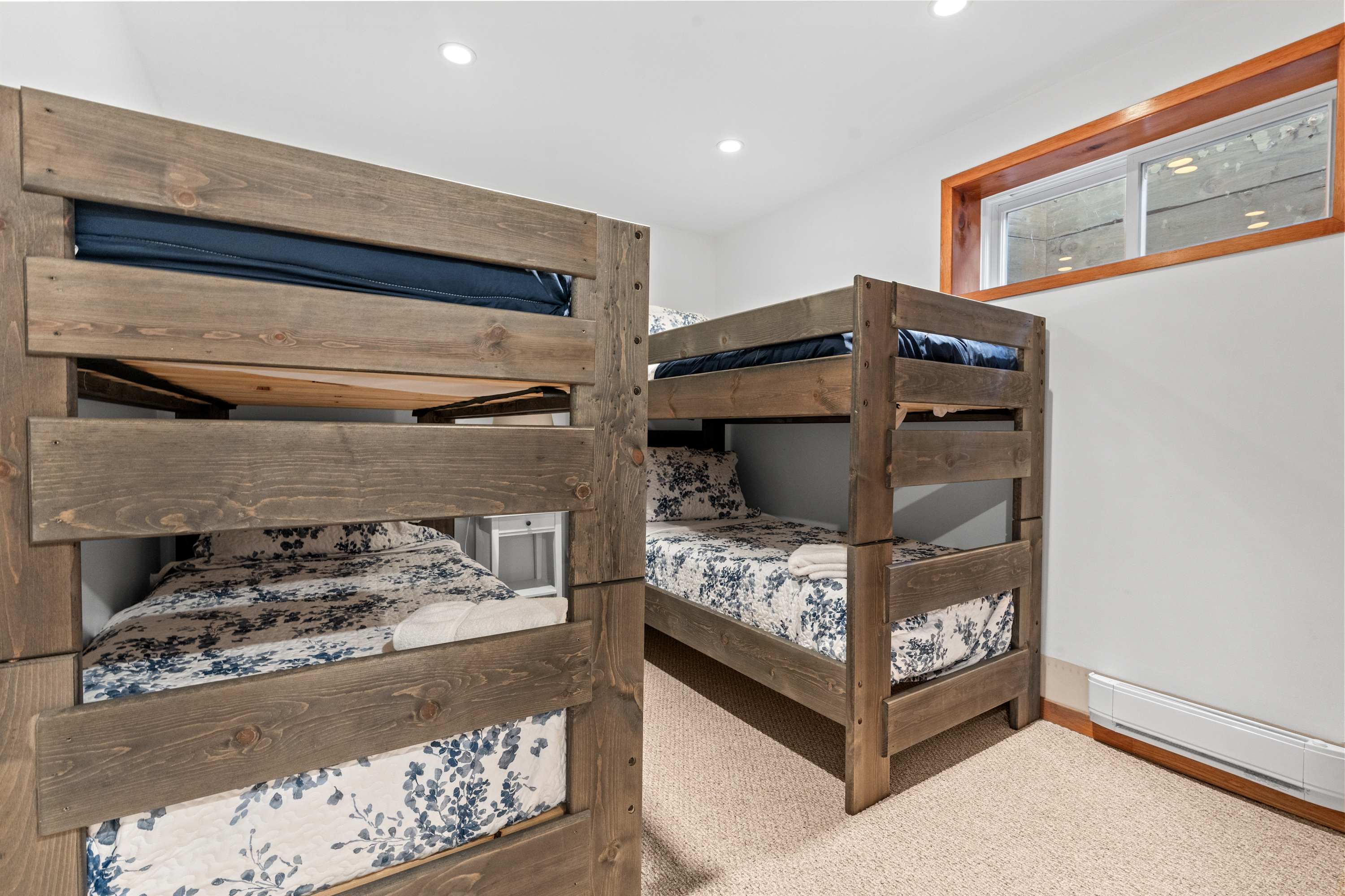 • 2 lower level bedrooms (2x twin bunk beds; queen)