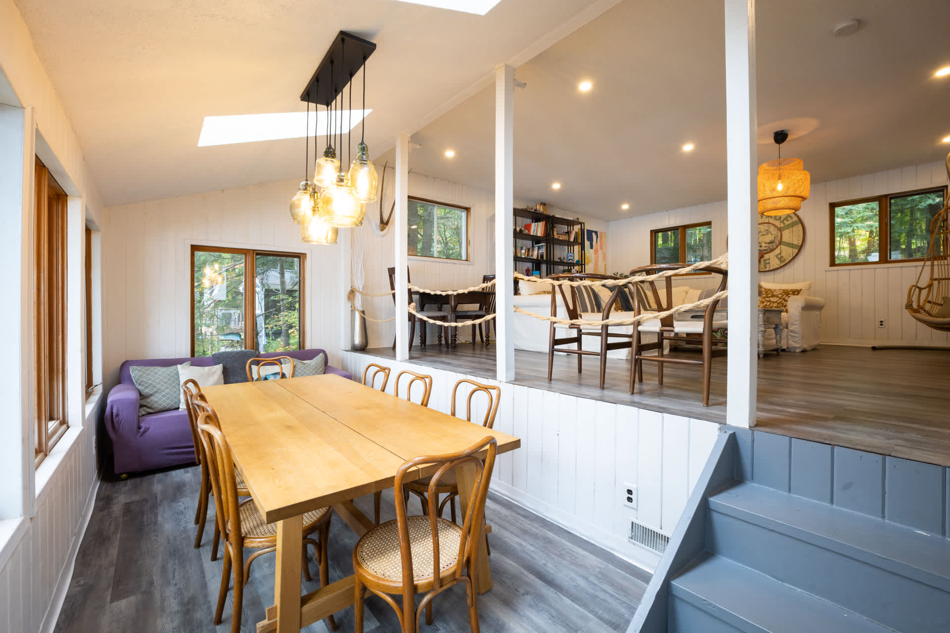 Welcome to ECHO LAKE RETREAT—just 2.5 hours north of Toronto. This beautifully updated, four-season A-frame cottage is nestled on the shores of Echo Lake and comfortably accommodates up to eight guests, making it perfect for extended families or groups seeking relaxation and outdoor adventure. With 120 feet of private lakefront, peaceful wooded surroundings, and easy access to nearby towns like Bracebridge, Huntsville, Dorset, and Dwight, this is the perfect home base for your next cottage escape.