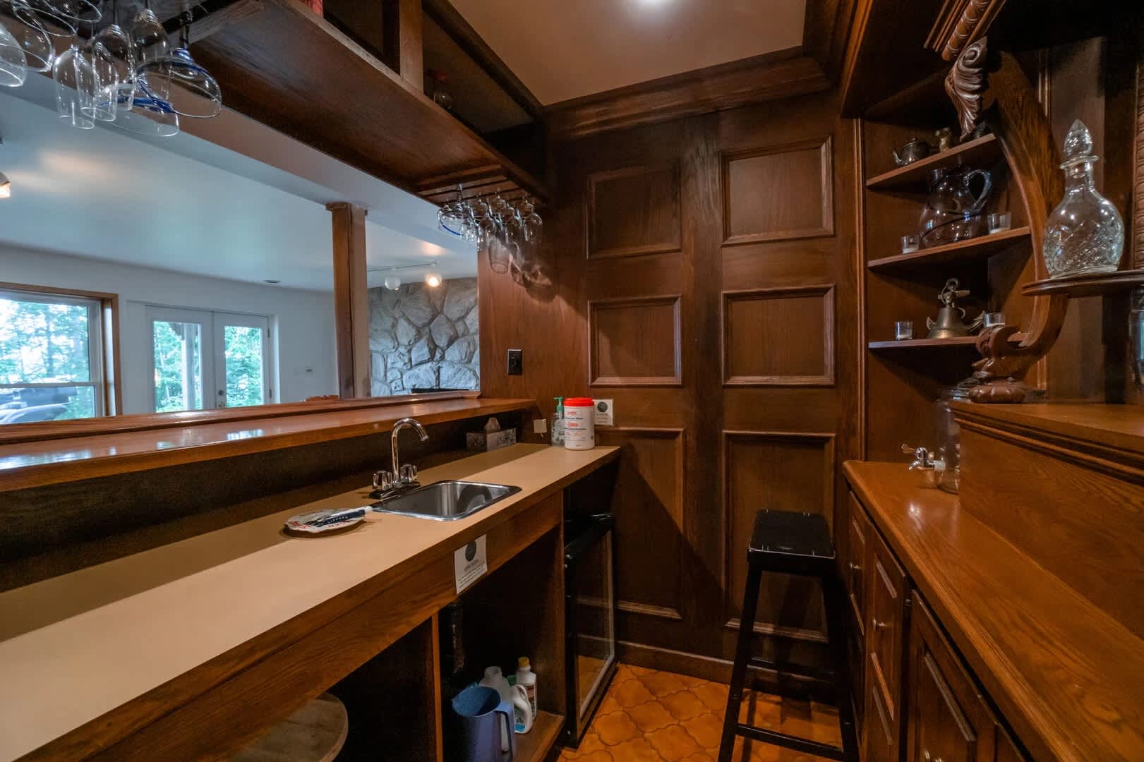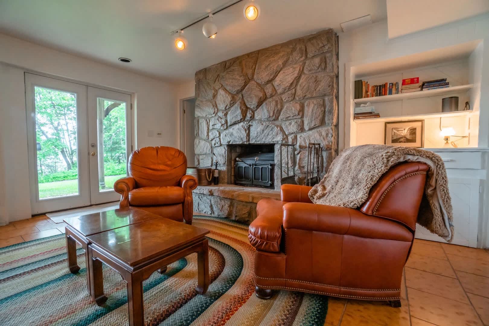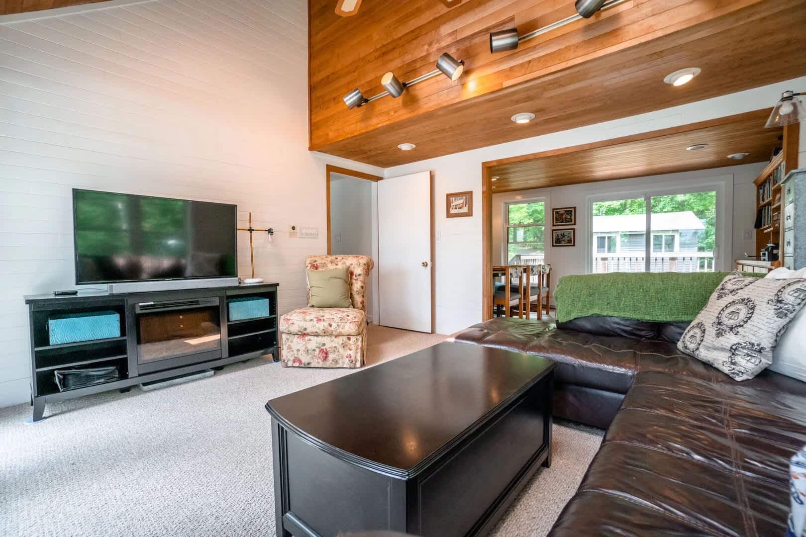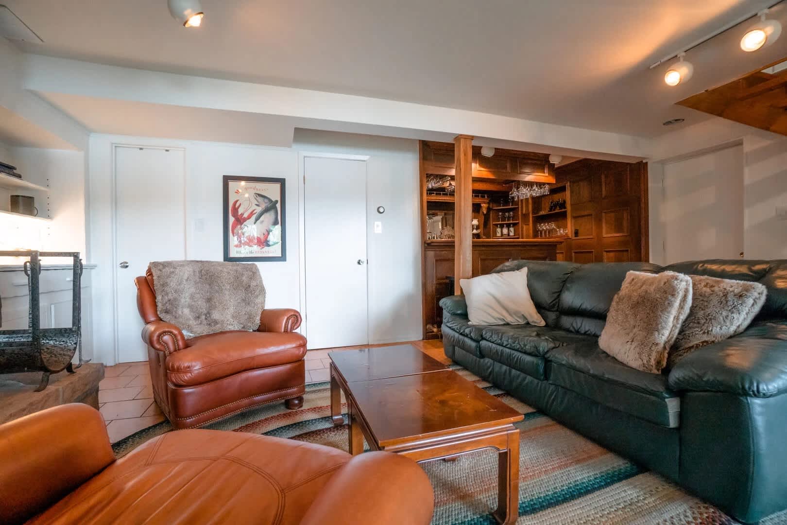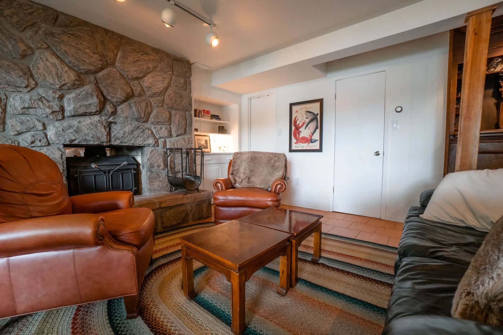 Inside, the main floor features a well-equipped kitchen and dining area with a double-sided fireplace connecting to the living room and sliding doors leading to a spacious deck. A twin bedroom and a cozy family room with sectional seating, Smart TV, and a second dining space make this level...