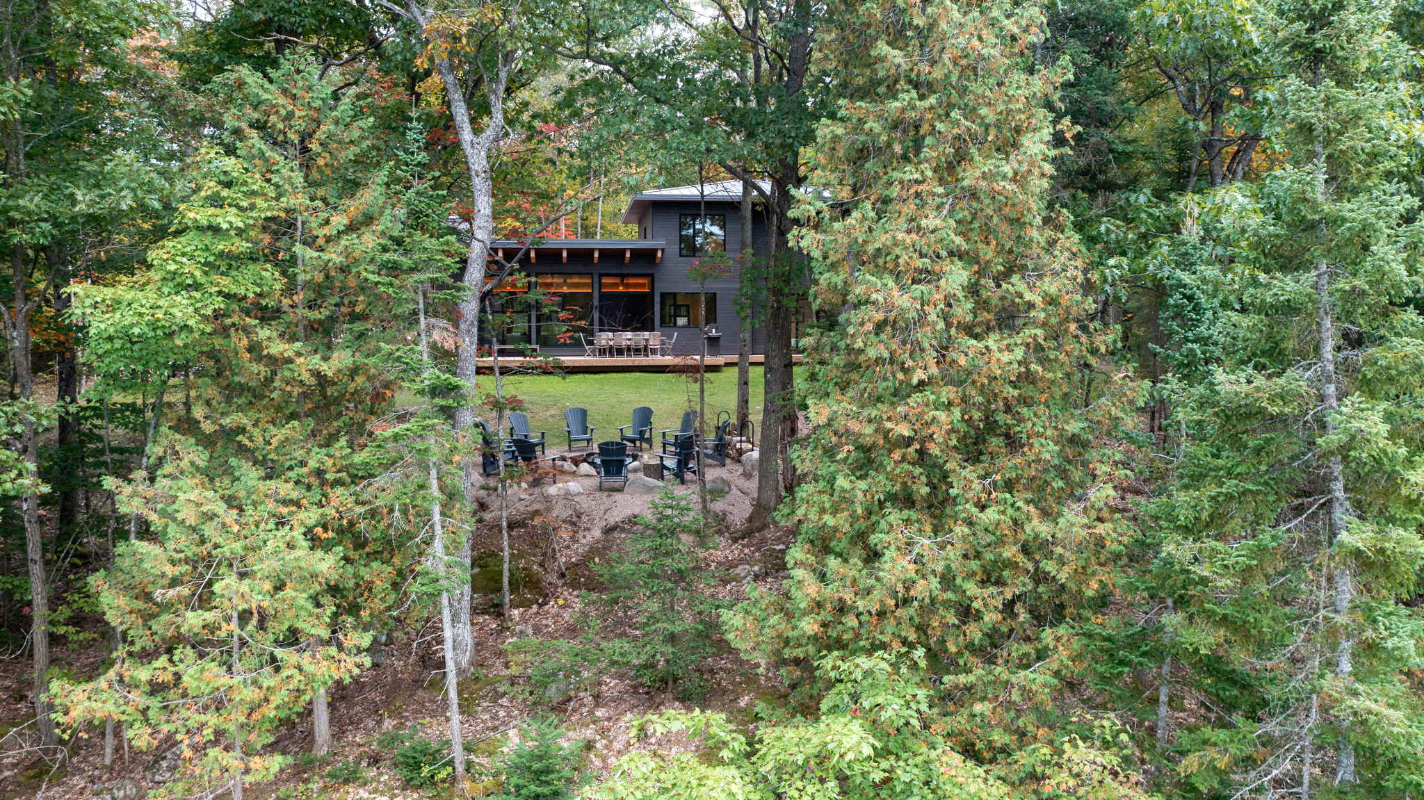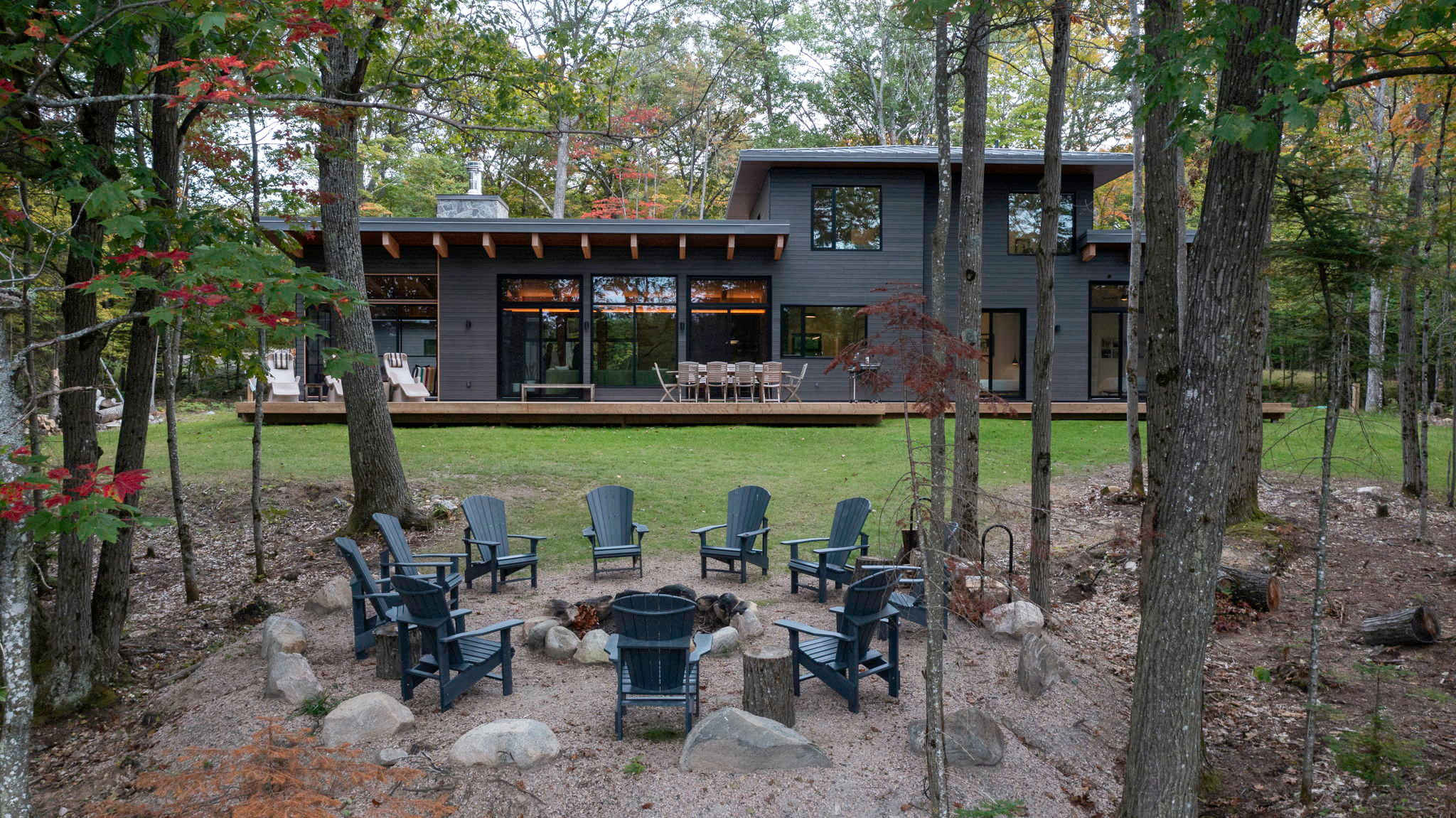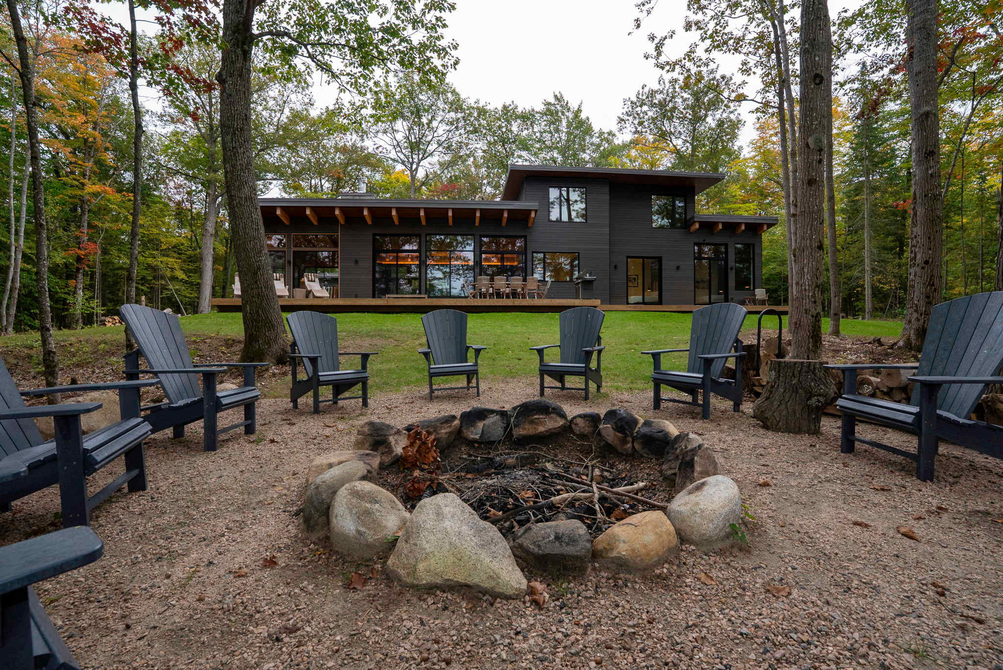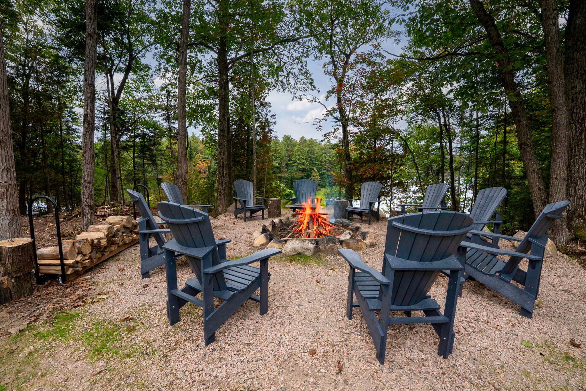 • Outdoor fire pit (some wood included) with 12 Muskoka chairs