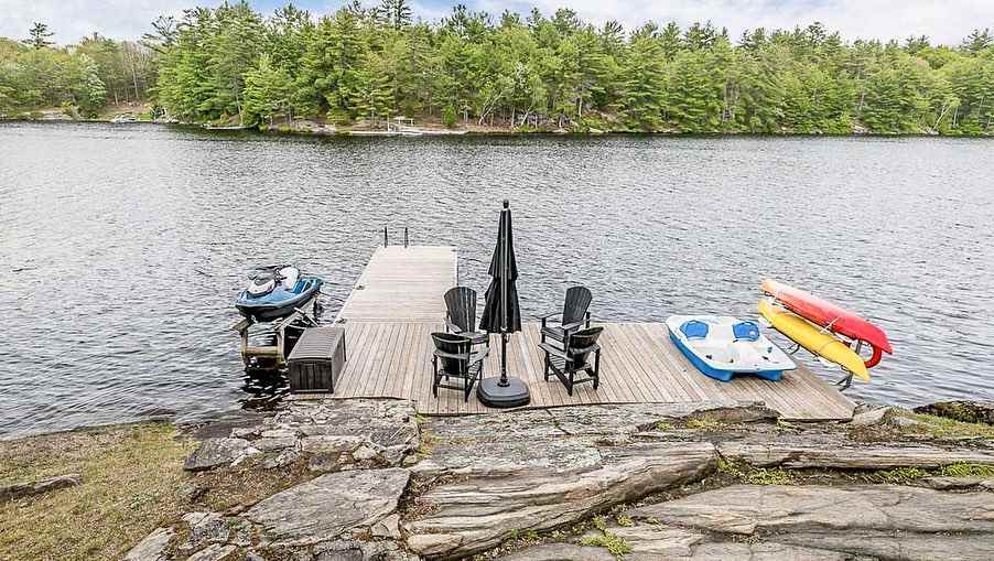 Escape to the beauty of Six Mile Lake and unwind at "Bears Den", a well-equipped cottage designed for comfort, relaxation, and lakeside enjoyment. The main cottage features a master bedroom with a queen bed and a second bedroom with two single beds, while the bunkie offers a king bed and a powder room for added convenience and privacy. Ideal for families or small groups, this property provides a peaceful Muskoka setting in a quiet bay where you can relax, enjoy the lake, and make lasting memories.
