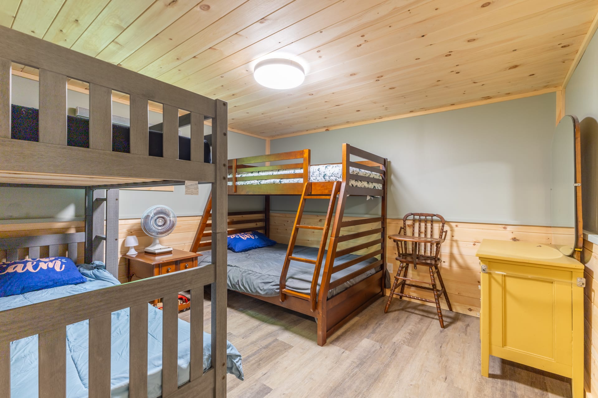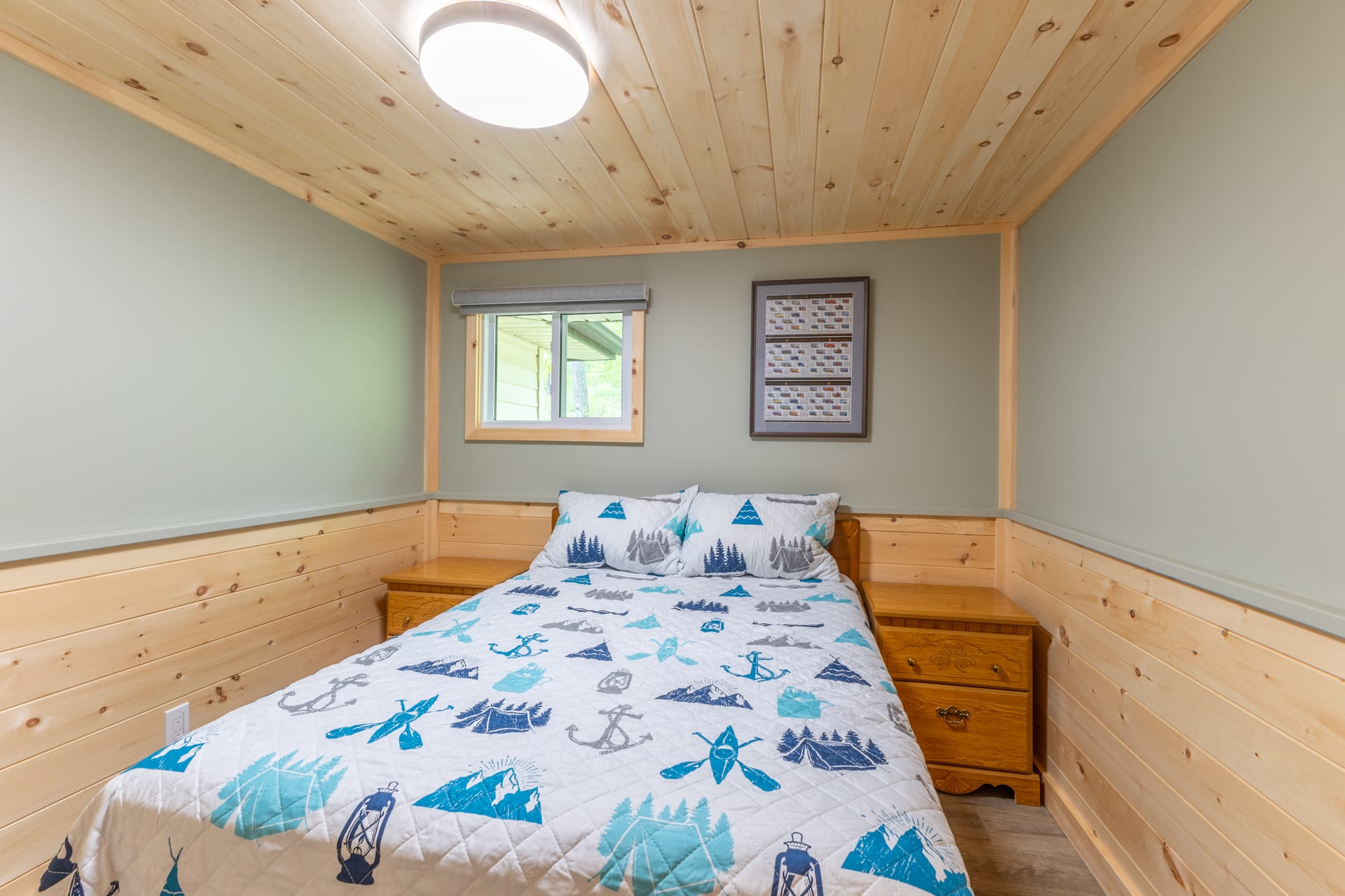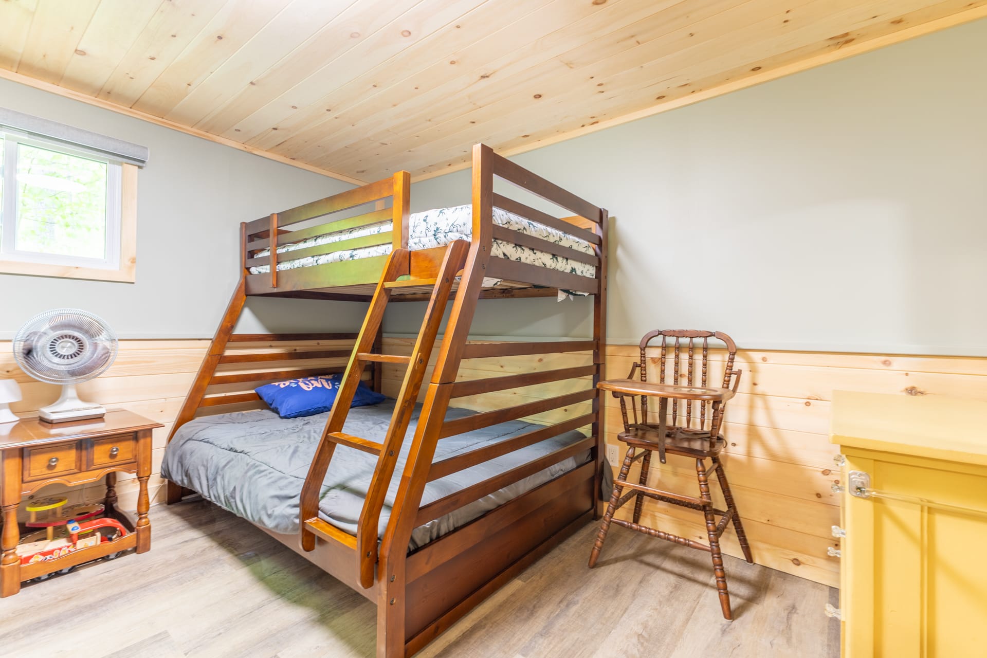 Nestled amidst the Kawarthas, this retro-inspired cottage offers a peaceful and cozy lakeside retreat. Boasting three cozy bedrooms, including two doubles and a bunk room with a single/double bunk bed and a single/single bunk bed, it comfortably accommodates families or groups of friends. Pillows, blankets, and linens are provided to ensure a hassle-free stay, while guests are kindly asked to bring their own towels.